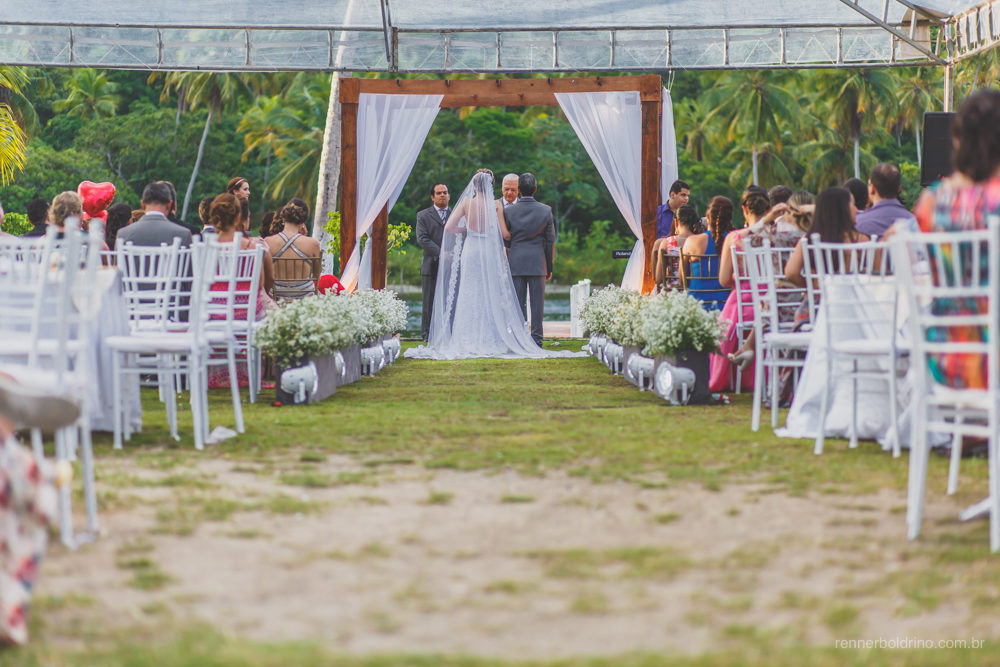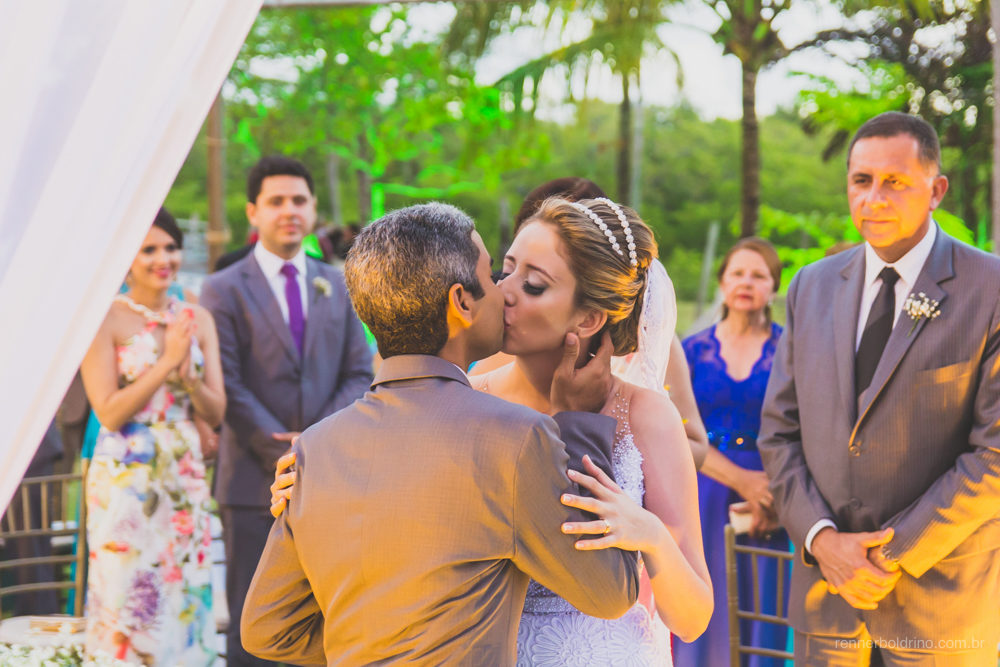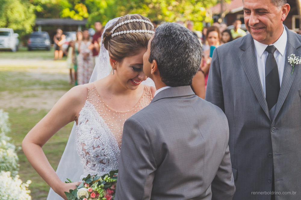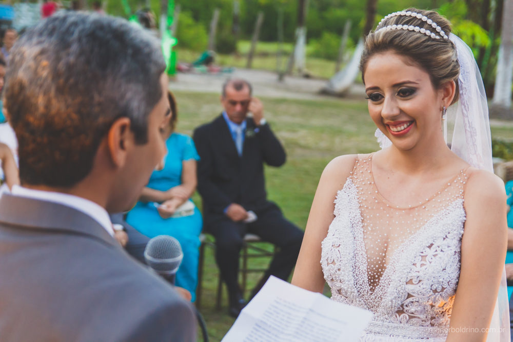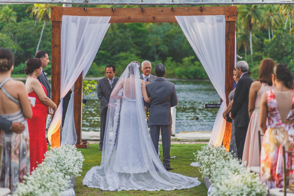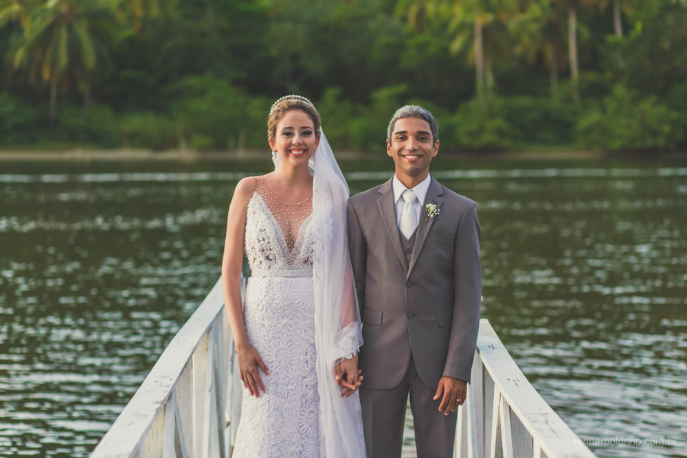 Ilha de Santa Rita, à beira da lagoa. A tarde era tipicamente alagoana no sol abundante. Risos, abraços, um toque de nervosismo e pessoas especialmente escolhidas que iam chegando e tomando seus lugares. Esse foi meu primeiro casamento depois que voltei do Wedding Brasil. O coração cheio de entusiasmo e convicto de que estar nesses momentos de Amor é mais que uma honra, é quase um chamado. O corpo queimava a quase 39 de febre. Acho que delirei. Mas ao olhar as fotos vi que foi tudo real; até o delírio. Taís e Otaviano me mostraram uma faceta do amor bonita: aquela que é um riso aberto e uma gargalhada espontânea frutos da alegria de se estar com quem se ama.
