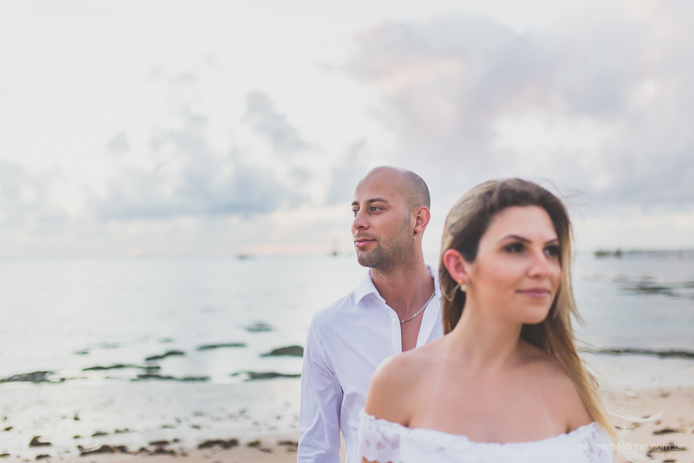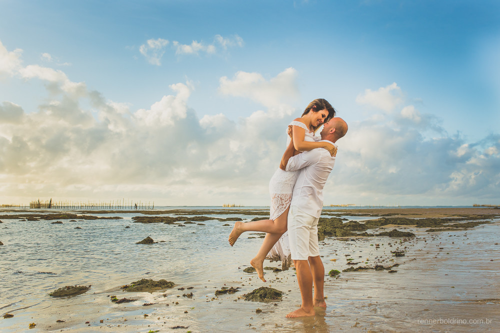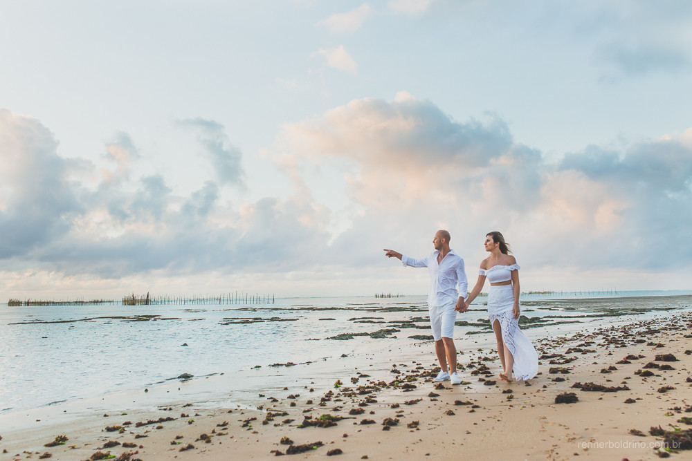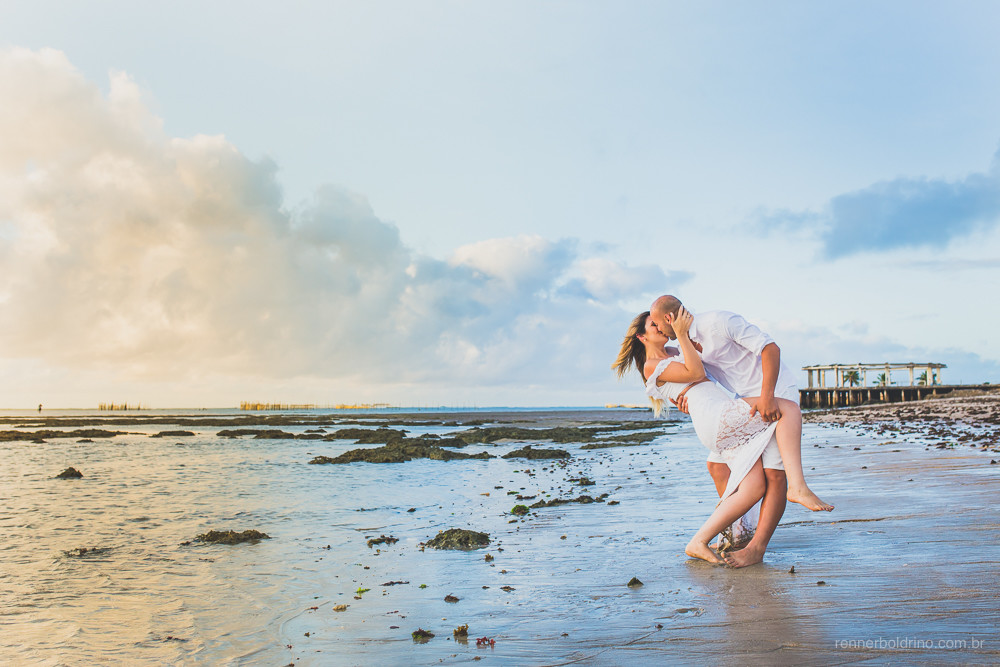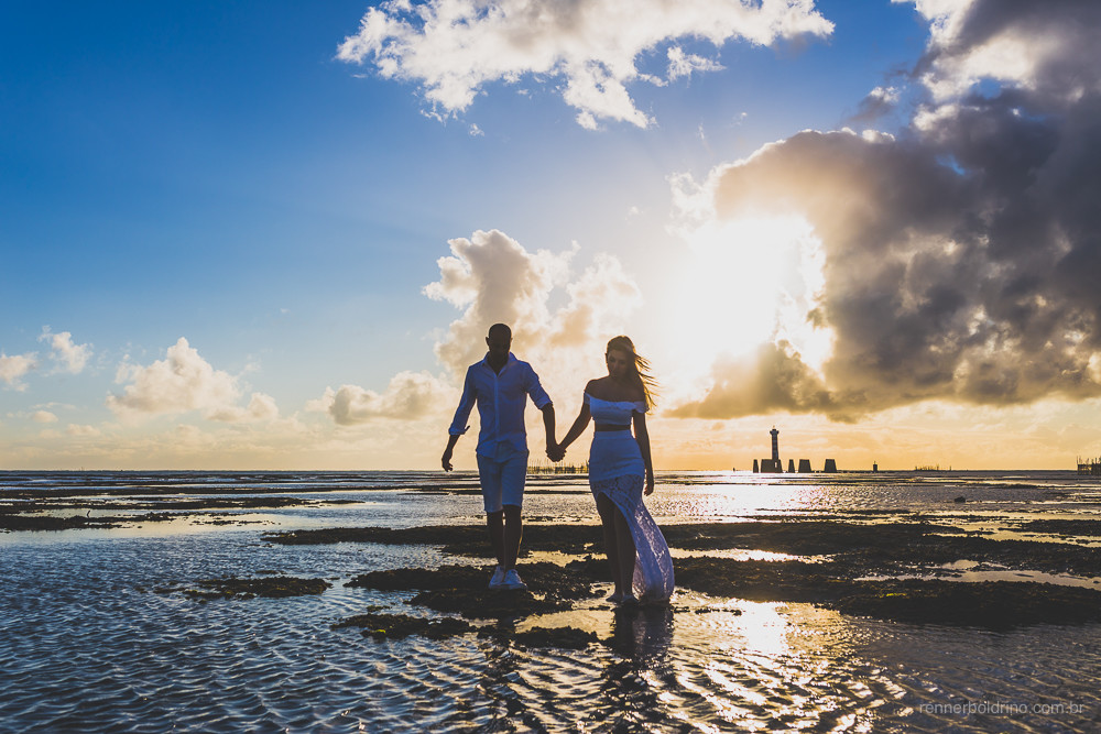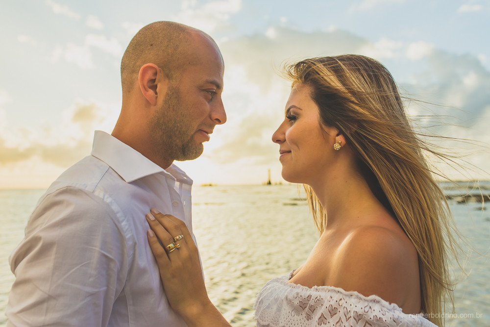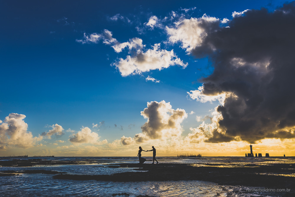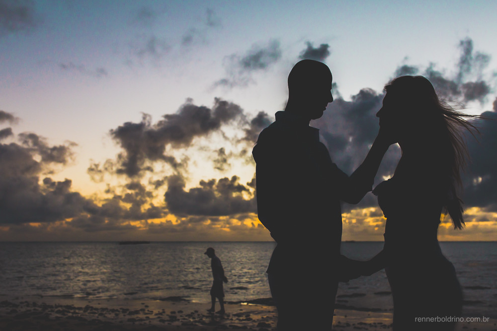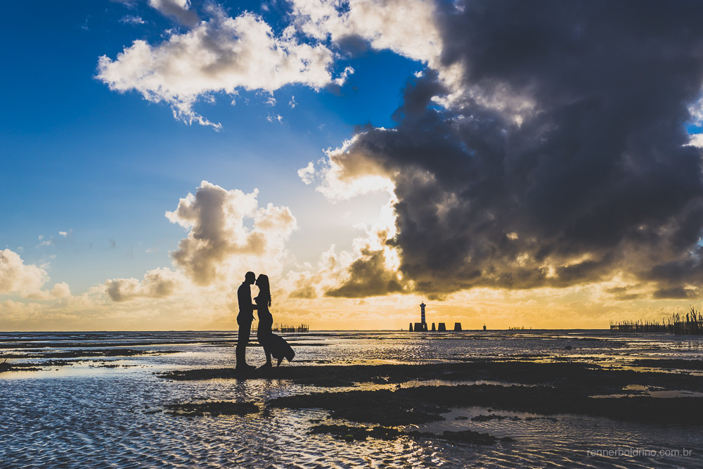 Coisa boa quando a gente encontra um casal que topa sair um pouquinho do habitual, como, por exemplo, acordar antes da 4 da manhã pra poder pegar o nascer do sol. O dia ainda estava escuro quando encontro Luciane e Julio no hotel. De lá partimos para a minha querida Praia da Pajuçara, cenário onde tenho testemunhando tanto amor. A natureza não fez por menos e brindou esse casal chapecoense com um dia maravilhoso. O céu carregado de nuvens foi se abrindo à medida que a luz ia pintando o mar e dando tom a esse ensaio. Das muitas cores de que se faz o amor, o sol é mestre a desenhar.